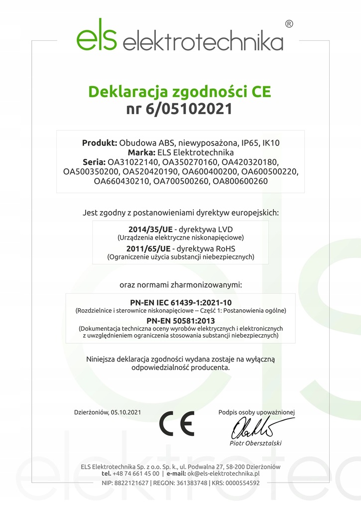 Після надсилання продукту з нашого журналу Ми надішлемо на вашу електронну адресу декларації CE, , що підтверджує виконання суворих стандартів для пристроїв, що використовуються в електриці.