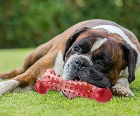 Гумова собача кістка ідеально підходить для принесення собак. Крім того, гумові іграшки чудово підходять для зубів і ясен собак.