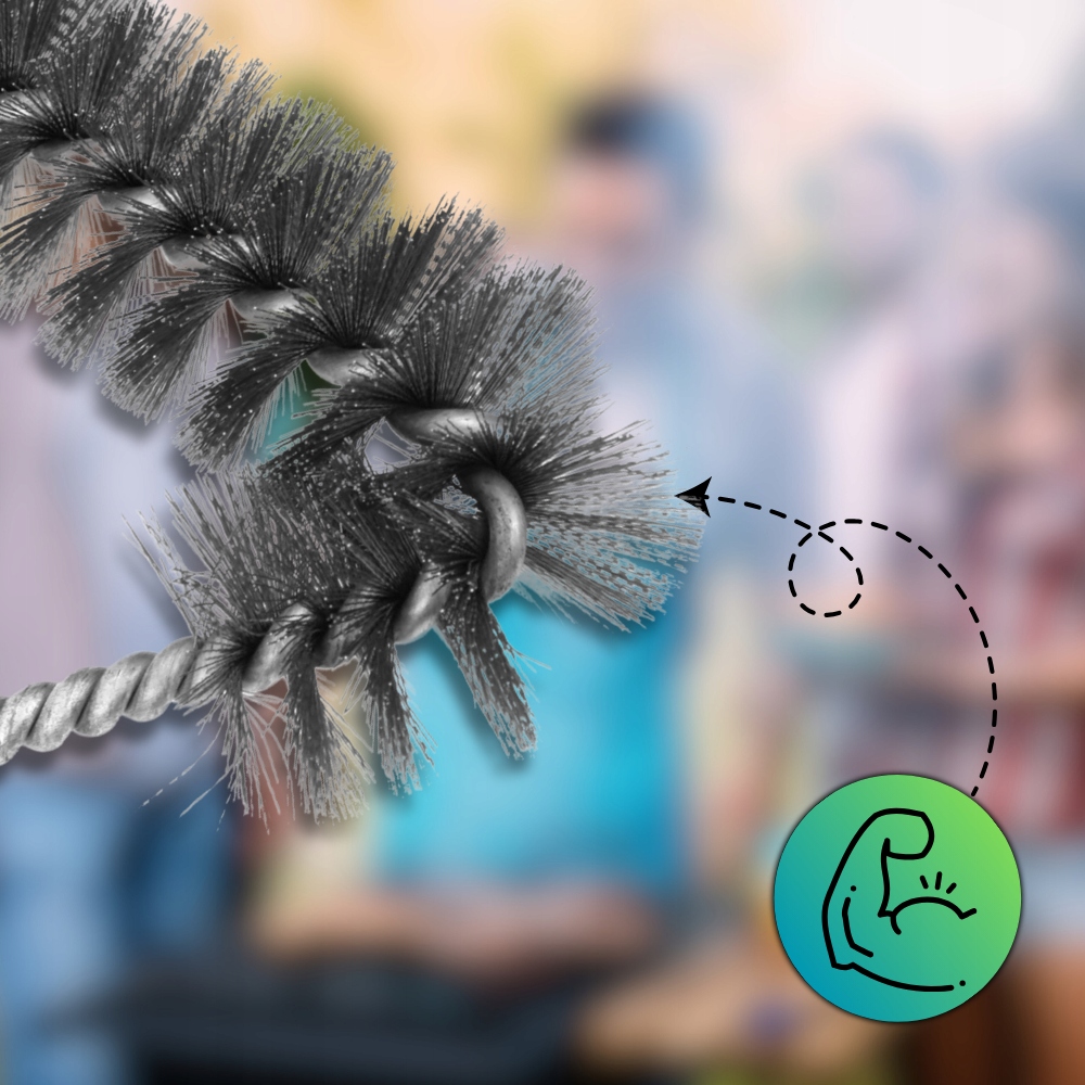 - Теплостійкість : щетинки з нержавіючої сталі стійкі до високих температур, що дозволяє забезпечити безпечне очищення гарячих решітків. 4