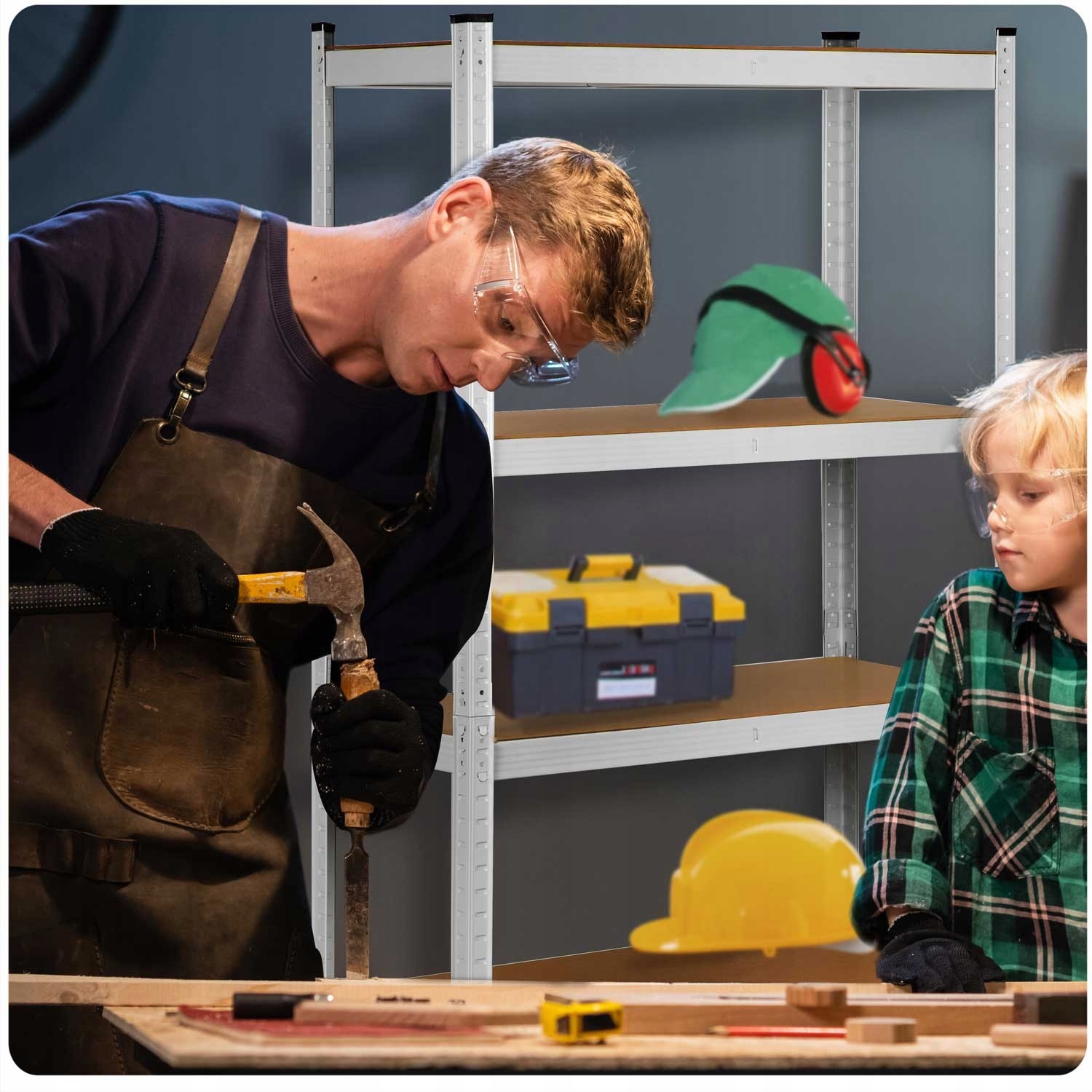 Кожна з 4 полиць витримує навантаження до 150 кг, що дозволяє зберігати важкі продукти, ящики або інструменти. Загальне навантаження на полицю становить вражаючих 600 кг!