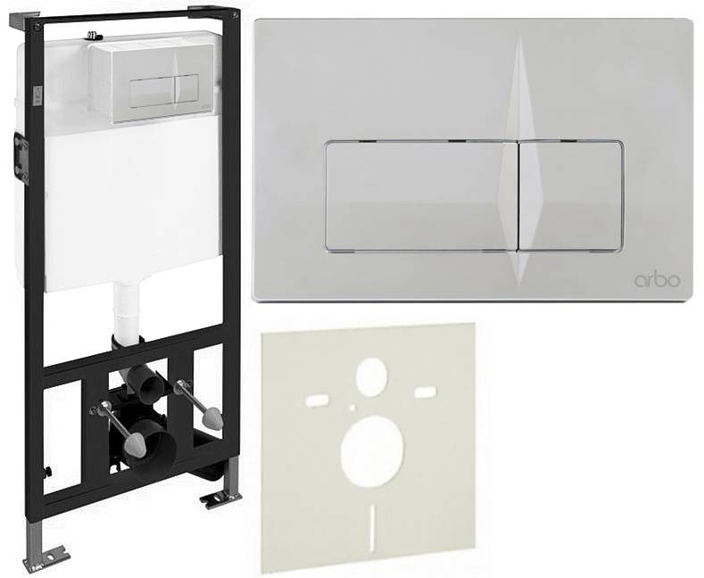 МІЦНА ПРИХОВАНА РАМА WC ARBO +КНОПКА ХРОМ +МАТ ЗВУКОІЗОЛЯЦІЙНИЙ КОМПЛЕКТ