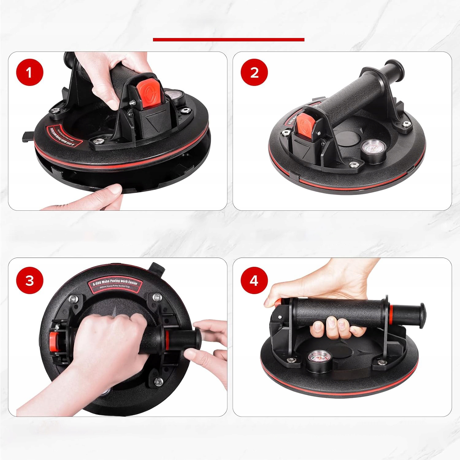 ☑️【Потужне всмоктування】Скляна вакуумна присоска має 8-дюймову плоску подушечку. Витримує навантаження 220 кг. Добре продумана ергономічна ручка ідеально підходить для підйому, перенесення та перенесення. Він нековзкий, портативний і дуже стійкий під час роботи.