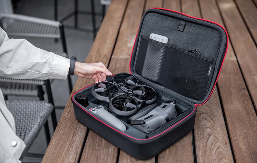 PGYTECH P-36B-030, незважаючи на свій невеликий дизайн, може вмістити DJI AVATA, DJI Goggles 2, контролер DJI, 5 акумуляторів, зарядний пристрій тощо. Однак менші кишені можуть встановлюють фільтри або карти пам’яті. Крім того, виїмки з EVA адаптовані до розміру аксесуарів, що допоможе тримати все в порядку.