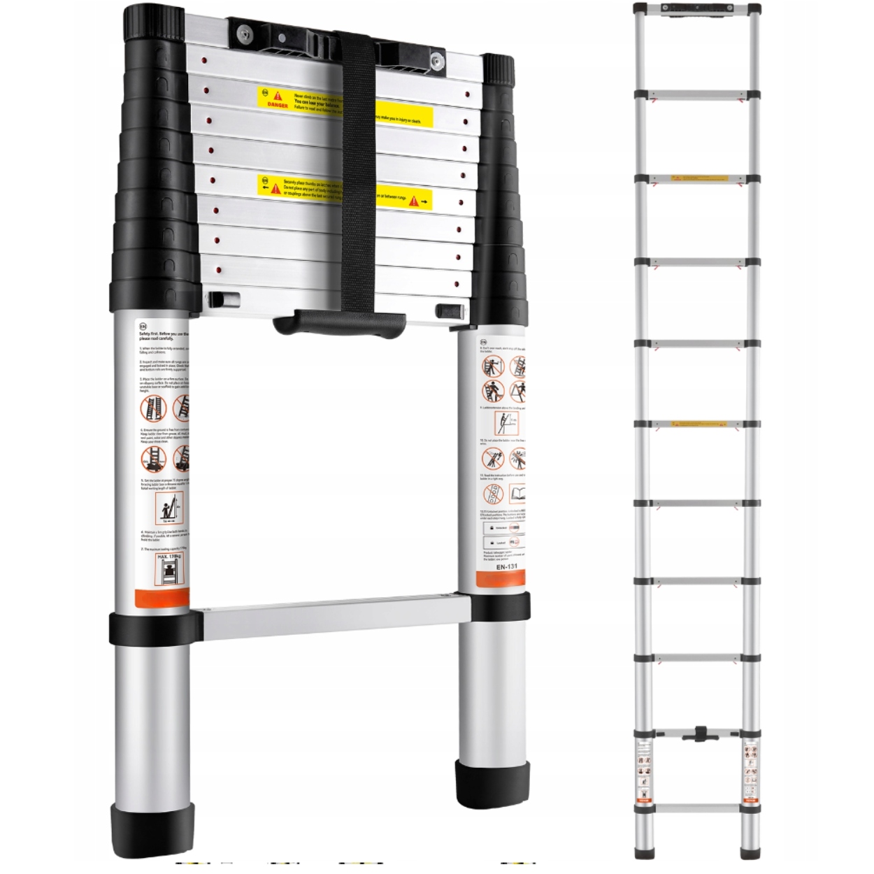 МІЦНА ТЕЛЕСКОПІЧНА ДРАБИНА 3,2 м ПЕРЕНОСНА СКЛАДНА ДРАБИНА ВАНТАЖОМУСПІЛЬНІСТЬ 170 КГ