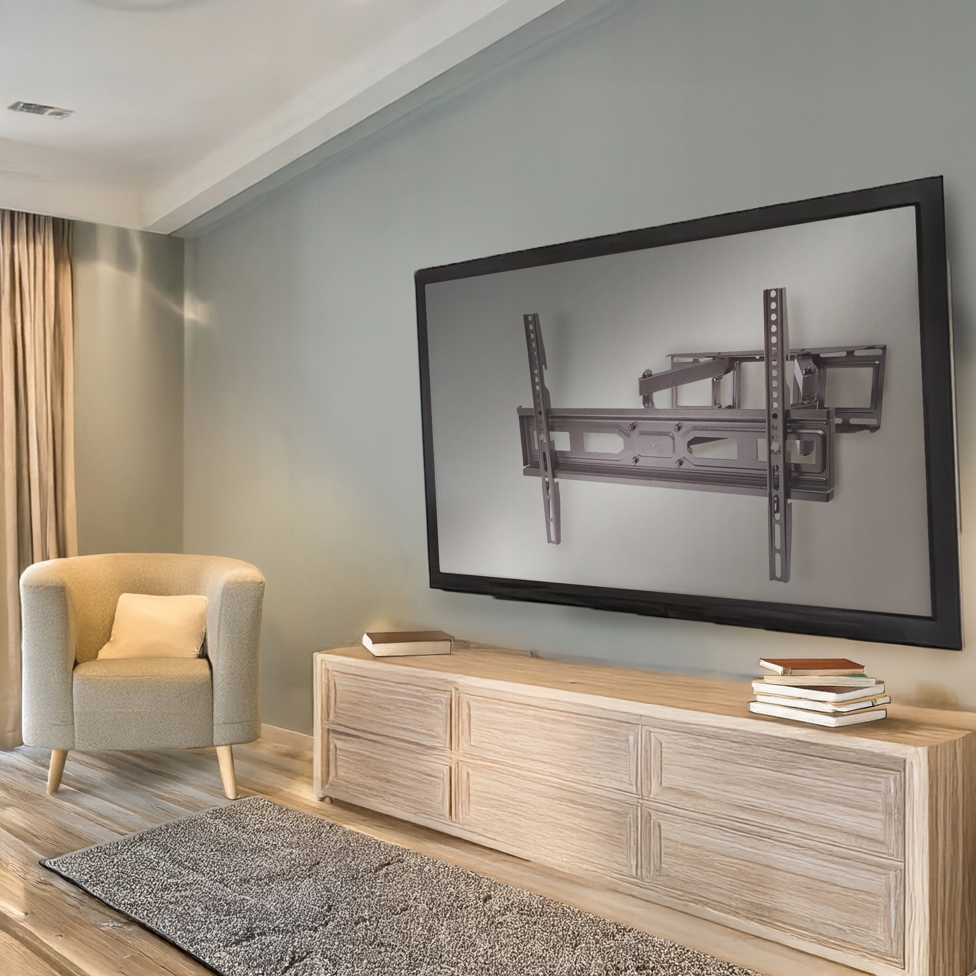 Відстань від телевізора до стіни становить лише 67 мм, що робить його непомітним, дозволяючи встановити його на будь-якій стіні, у будь-якій кімнаті.