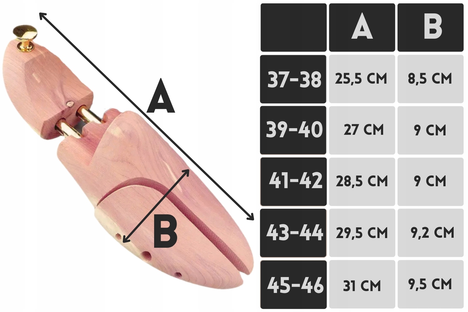 Кедр є деревиною високої щільності, що забезпечує відмінну стійкість і довговічність дощок. Завдяки цьому взуттєві ялинки не тільки збережуть форму вашого взуття, але й прослужать довгі роки.