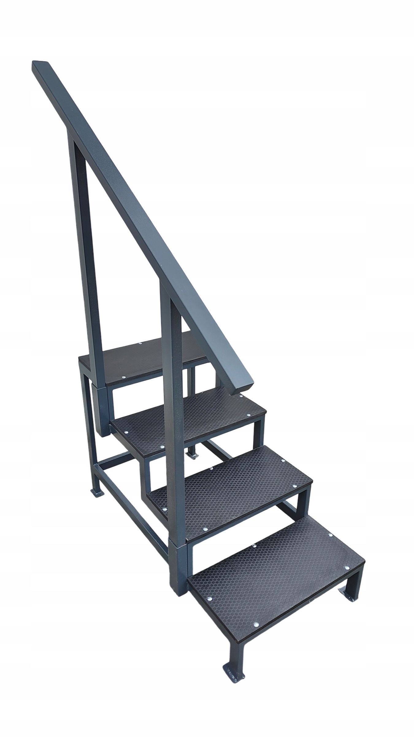 Ми пропонуємо сходами висотою 60 см, ширина градусів 50 см (загалом з бар'єром близько 56 см). Бар'єр дозволяє легко увійти в будинок. Сходи виготовлені з порошкоподібної сталі та 12 -мм -товщиною фанери. Ми поставили їх у продаж, оскільки у нас було багато запитів від інших власників мобільних будинків. :-) Вони зроблені, щоб їх можна було використовувати відразу після доставки. 4 Ми можемо зробити сходи з перилами зліва або вправо. Сходи з бар'єрами з двох боків не вказані, тому що двері від дому можуть бути перенесені ними. Також немає перешкод використовувати такі сходи, як, наприклад, Сходи на терасу або ганок. Вони повністю мобільні, тому їх можна вільно переміщувати, і завдяки відповідній вазі вони одночасно стабільні та певні, а також прості в встановленні та переміщеннях. Технічні дані