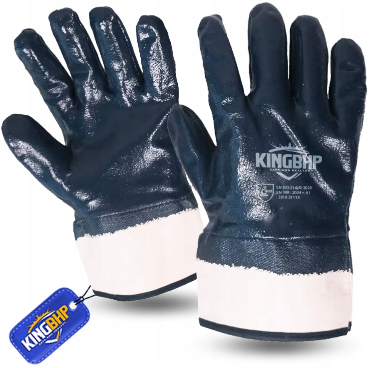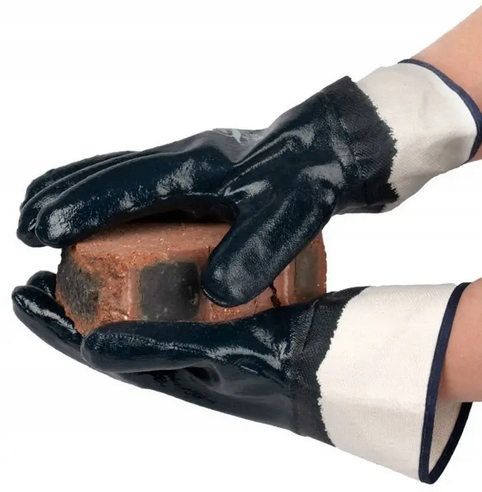 Універсальні захисні рукавички з міцного трикотажу бавовняного трикотажупокритого товстим шаром важкого нітрил. Міцний, гнучкий, добре лежить в руці. Нітрилове покриття забезпечує спритність і надійний хват інструментів, а також зменшує проникнення бруду. Рукавички з нітриловим покриттям мають високу стійкість до жиру та масла.