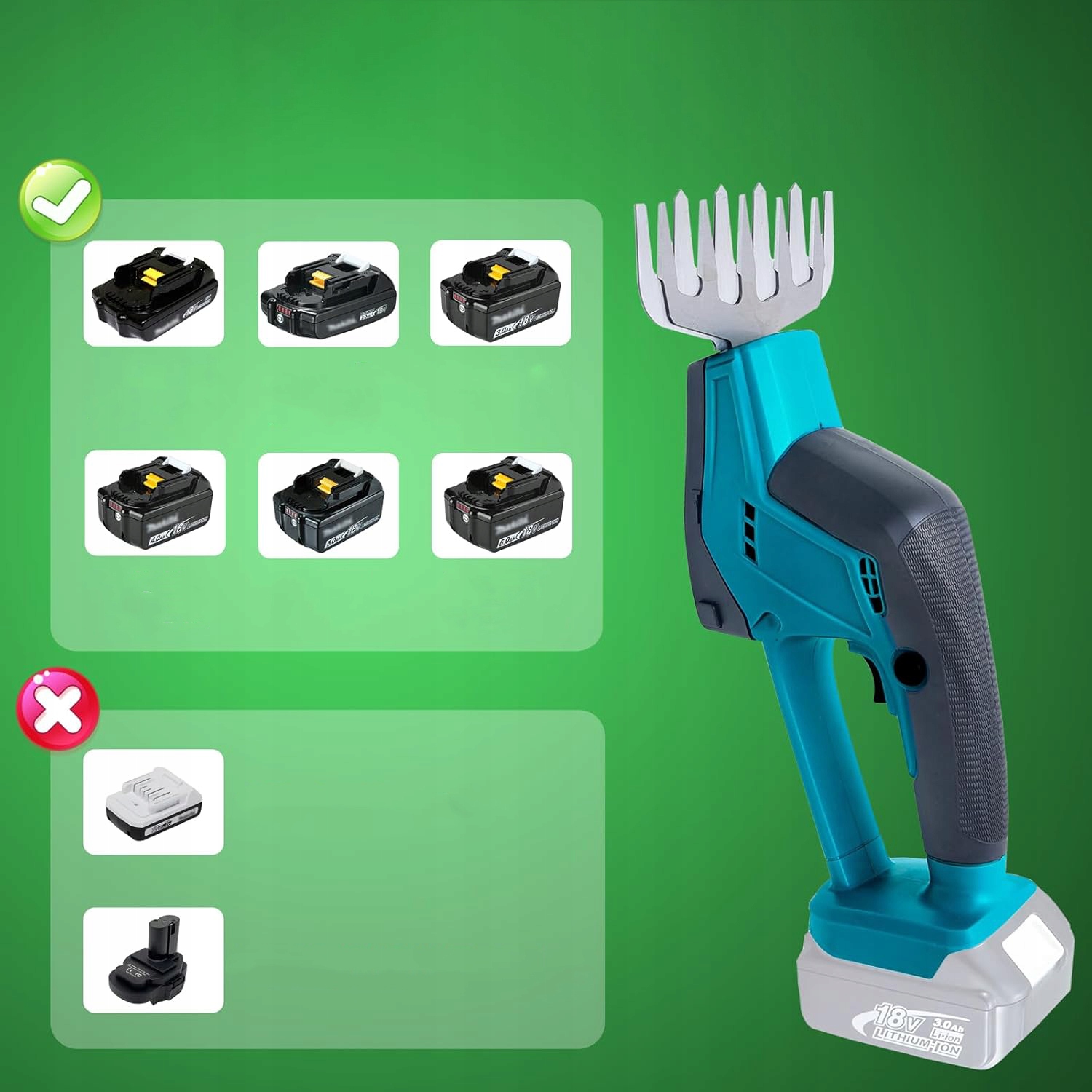 МІЦНІ НОЖИЦІ ДЛЯ ЖИВОПЛОТУ ТРАВИ КУЩІВ АКУМУЛЯТОРНІ 18V + 2.6AH AKU ЛЕГКА