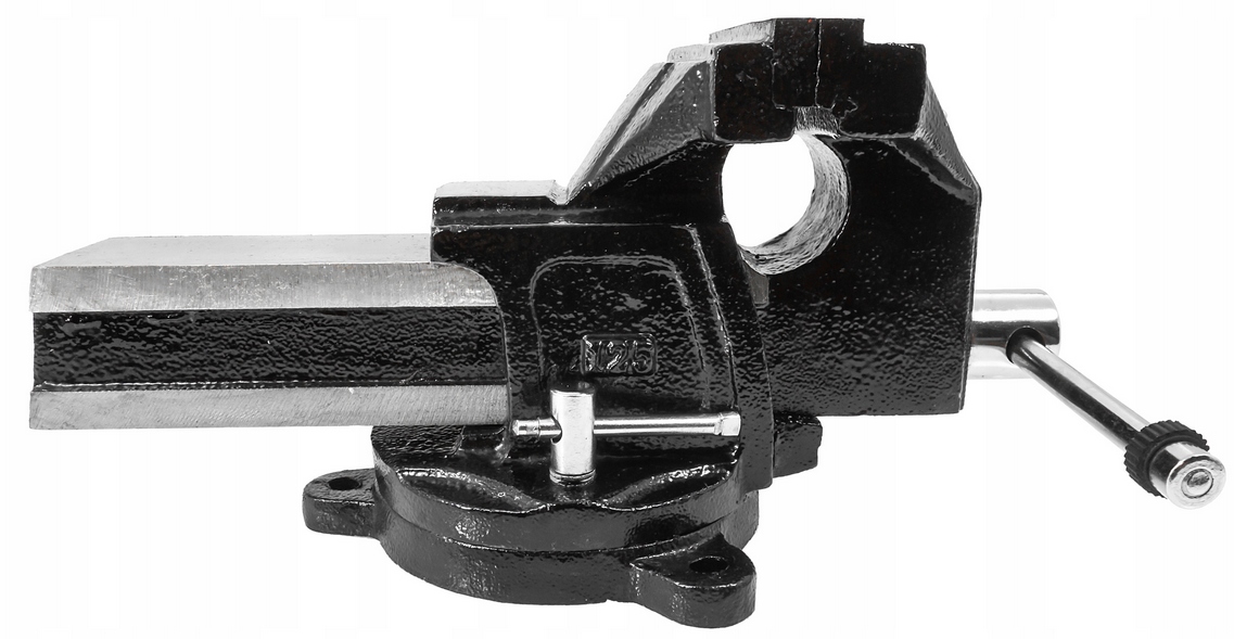 Основа обертається в діапазоні 360°, дозволяючи змінювати кут у горизонтальній площині. Лещата, з’єднані з ковадлом, створюють міцну компактну структуру.