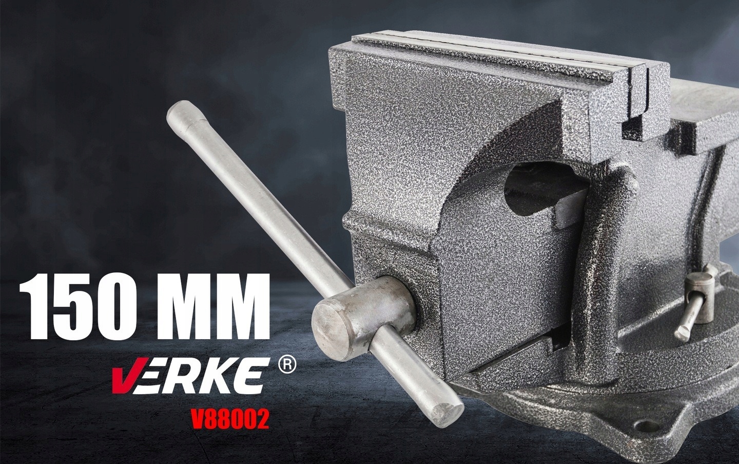 Професійні лещата від VERKE. Призначений для вимогливих слюсарних майстерень, загальних механічних і автомобільних послуг, точно виготовлений з найкращих матеріалів, надзвичайно універсальний завдяки можливості обертання. Корпус лещат із сірого чавуну, змінні губки 150 мм і ковадло із загартованої сталі. Лещата встановлені на поворотній платформі. Поверхня покрита чорним «молотковим» лаком.