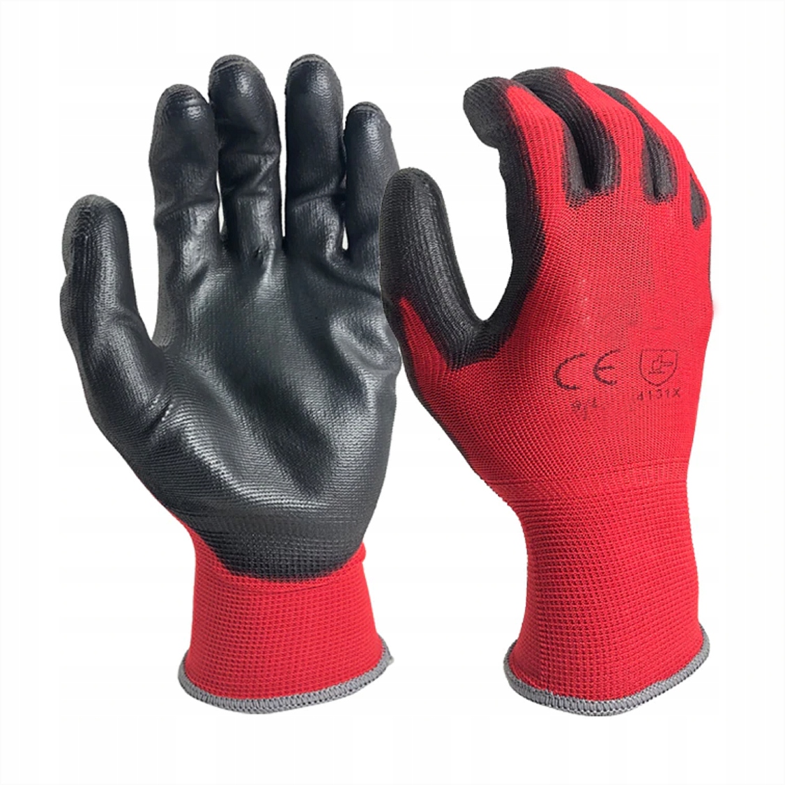 Захисні робочі рукавички, виготовлені з червоного поліефірного трикотажу, покриті чорним латексом, безшовні, оброблені манжетою - 10 ПАР