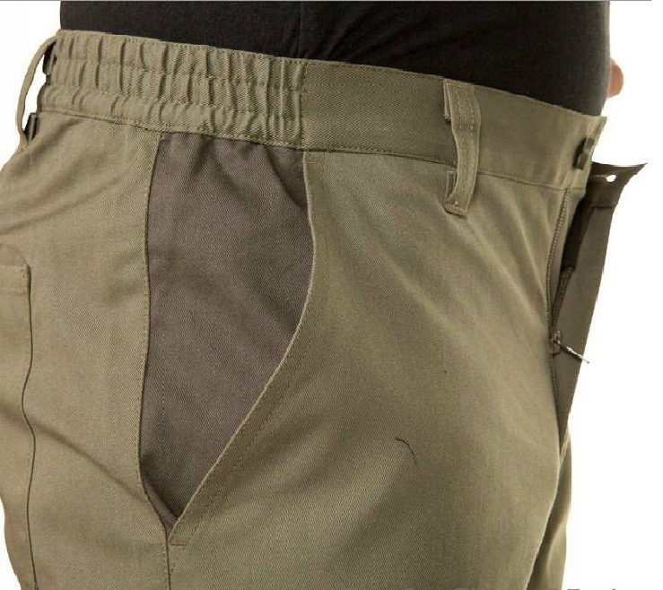 Штани не шелестять, вони тихі та добре пошиті, з напівеластичним поясом і численними кишенями.