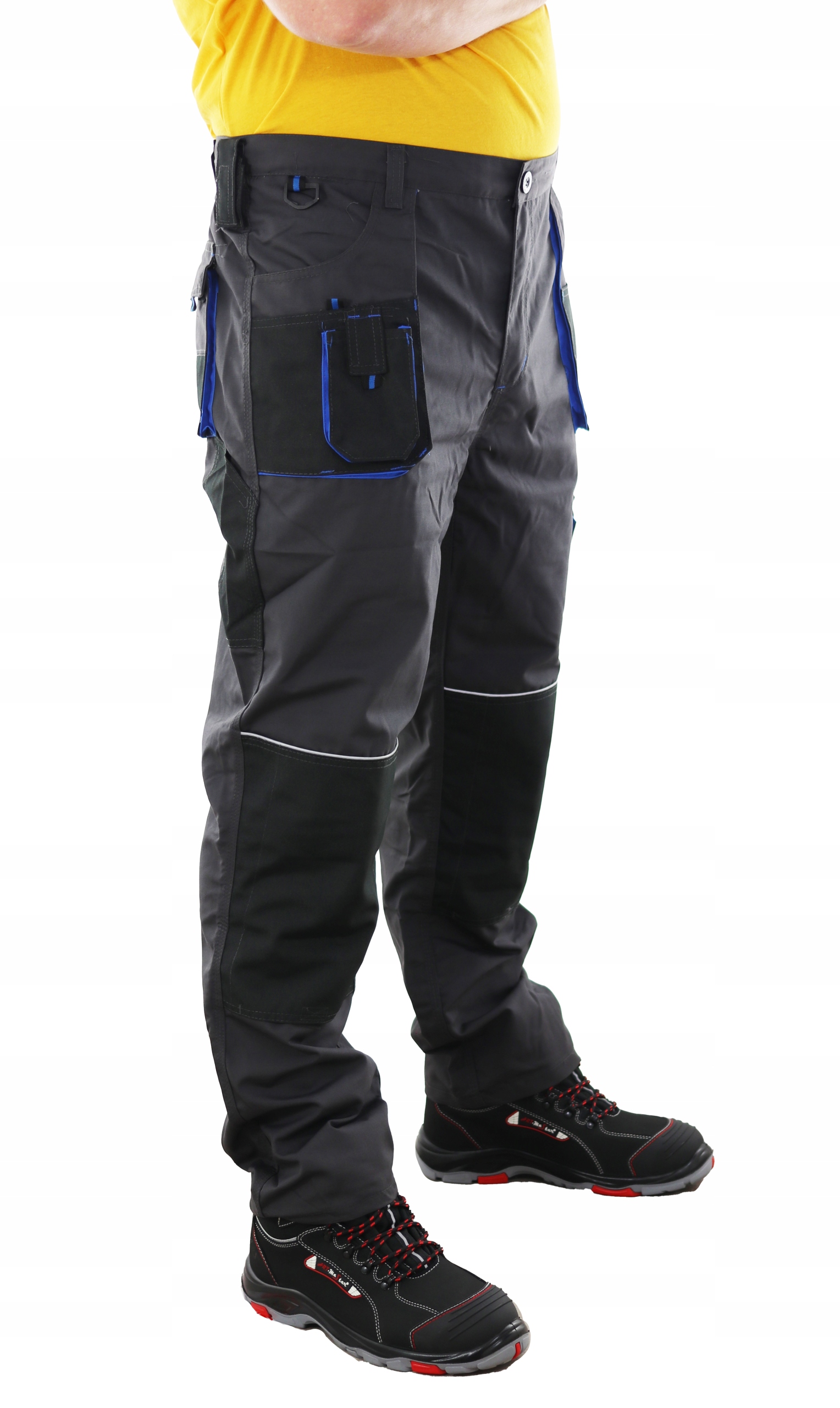 Штани ідеально підходять для роботи в будь-яких умовах завдяки додатковому посиленню з тканини OXFORD і світловідбиваючим елементам . Велика кількість прихваток у місцях, особливо вразливих до розриву.