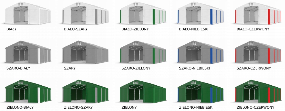 білий, біло-сірий, біло-зелений, біло-синій, біло-червоний, сіро-білий, сірий, сіро-зелений, сіро-блакитний, сіро-червоний, зелено-білий, зелено-сірий, зелений, зелений -синій, зелено-червоний