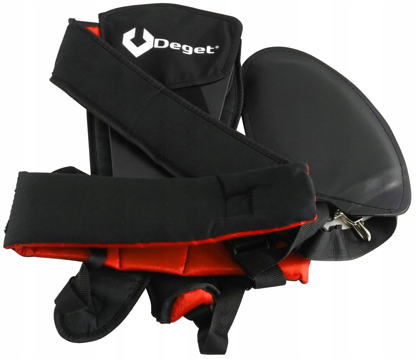 Ремені кущоріза підвищують комфорт оператора під час косіння трави, забезпечуючи оптимальний баланс ваги та кращий контроль над пристроєм. Зручні широкі лямки гарантують свободу рухів, а м'який матеріал запобігає потертості під час тривалої роботи. Посилена задня частина ременя розвантажує хребет, підвищуючи комфорт при роботі. Плечові ремені та ремінь регулюються по довжині для кращої посадки. Стегновий ремінь застібається на пряжку на рівні живота, що забезпечує більший комфорт і свободу рухів, на відміну від дешевих стандартних ременів, що застібаються на висоті грудини. Упряж оснащений фіксатором для швидкого від’єднання коси однією рукою.