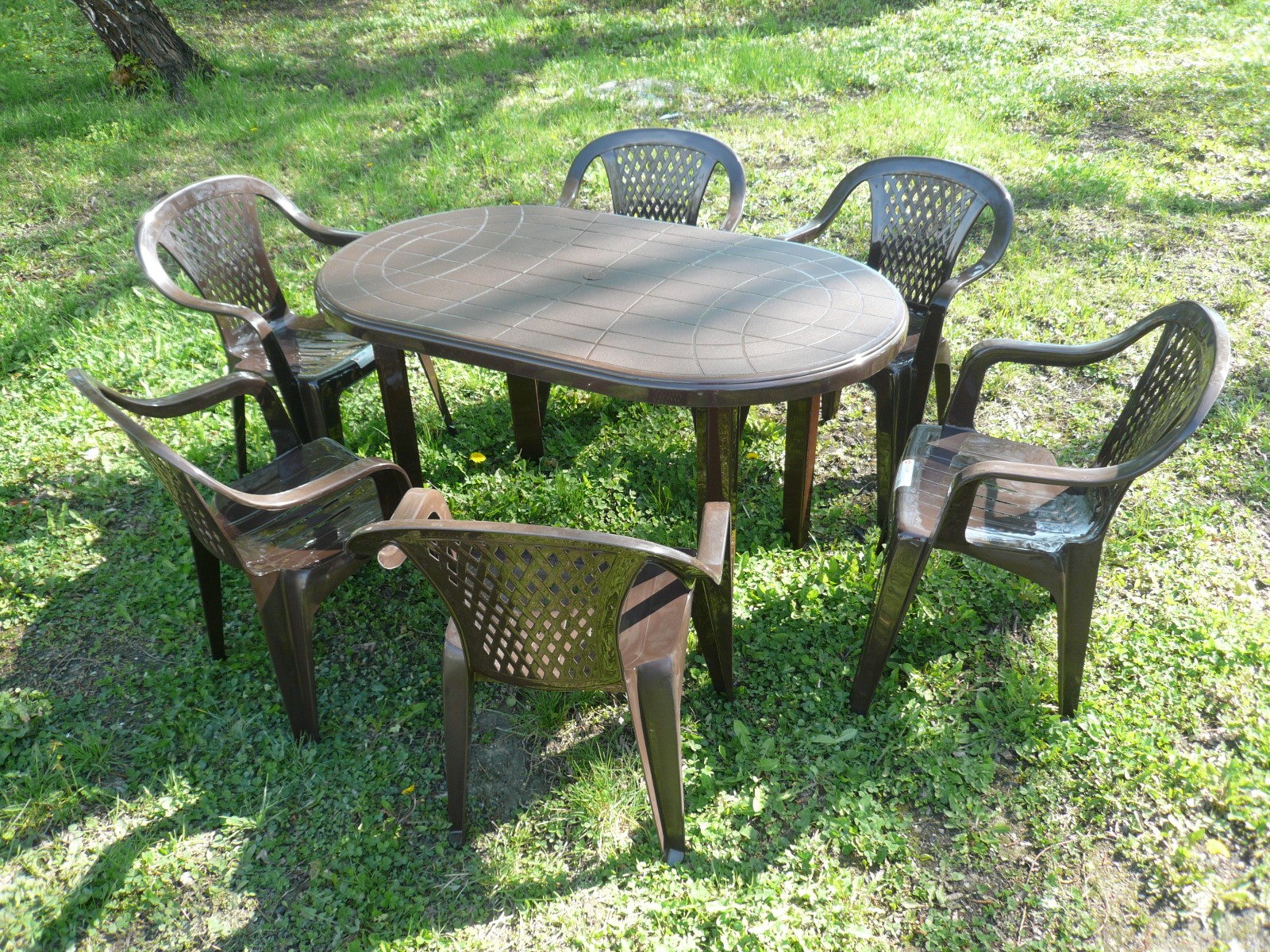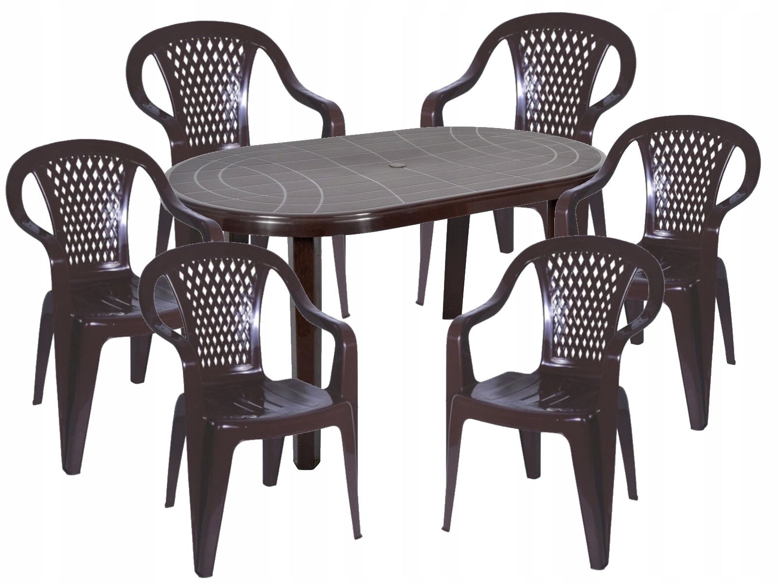 МІЦНИЙ КОРИЧНИЙ КОМПЛЕКТ 6 + 1 ВЕЛИКИЙ СТОЛ ПЛАСТИКОВИЙ САД