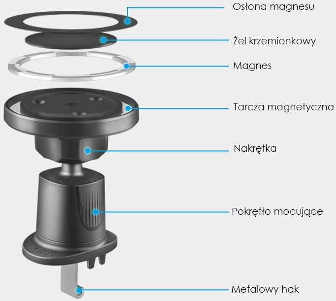 У комплект входить магнітне кільце, яке дозволяє телефонам різних виробників працювати з тримачем.