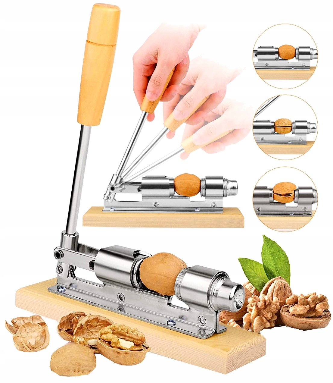 ✅ Міцний Лускунчик з нержавіючої сталі на дерев’яній основі