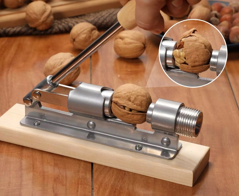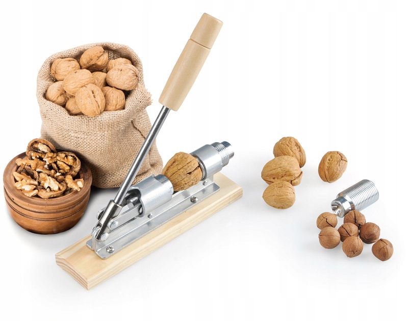 - Лускунчик має конструкцію, яку можна легко регулювати. Це робить його придатним для розколювання горіхів різного розміру, включаючи як великі волоські, так і дрібні лісові горіхи.
