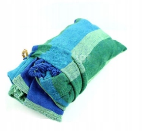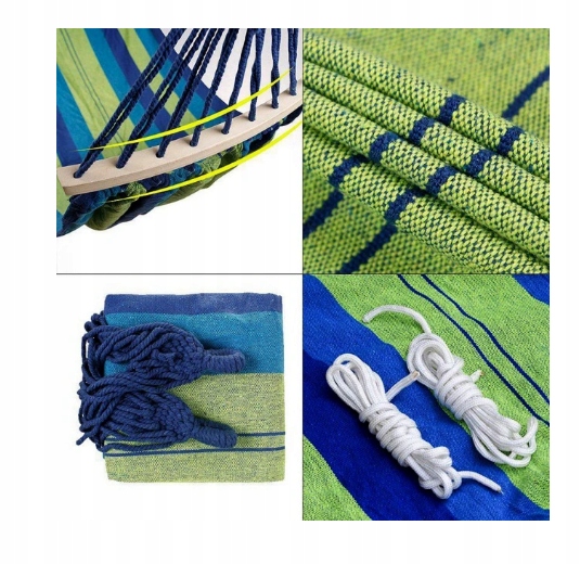 Гамак дуже міцний і водночас матеріал проникний для повітря, що робить його дуже комфортним. Гамак виготовлено з міцного матеріалу (товстий бавовна з домішкою поліестеру), подібно до мотузок з товстим плетенням.