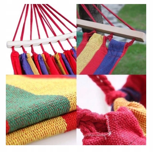 - Завдяки дерев'яному каркасу гамак не згортається, міцні мотузки та матеріал забезпечують тривале використання