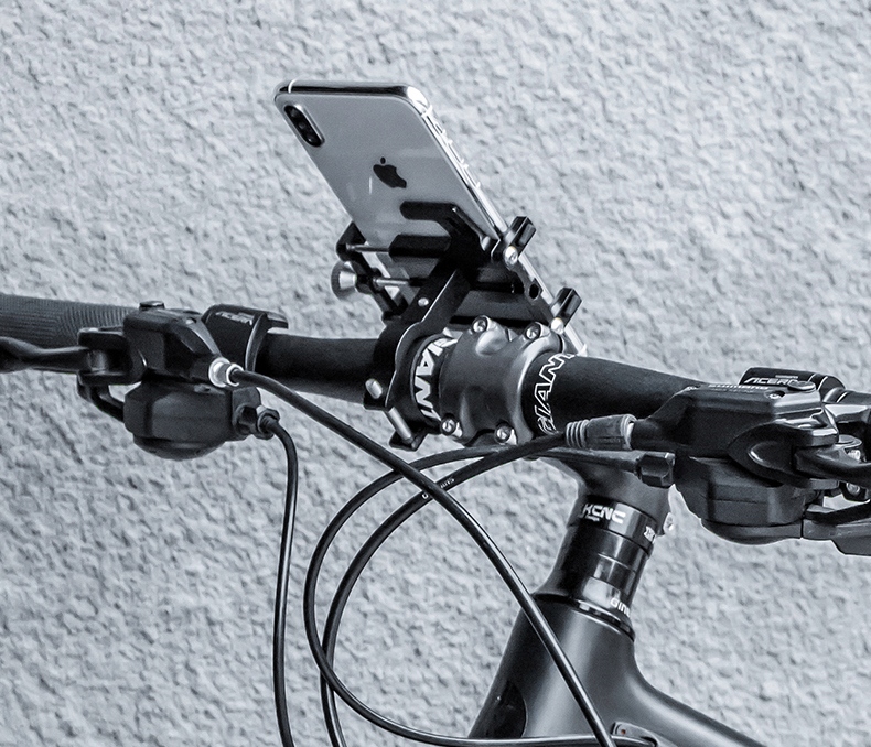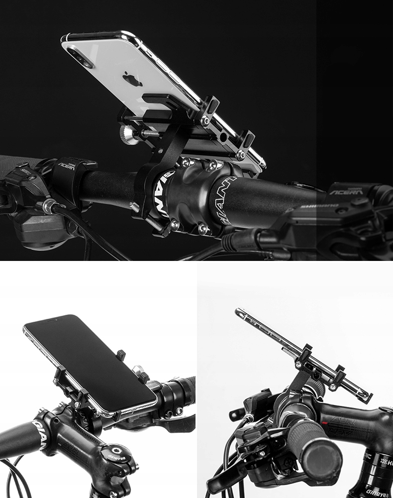Алюмінієвий тримач для телефону - незамінний аксесуар для мандрівників. Ми представляємо надійний і міцний тримач для телефону, повністю виготовлений з алюмінію. Його можна встановити на кермо або винос велосипеда, підходить для діаметрів керма від 22 мм до 31,8 мм.