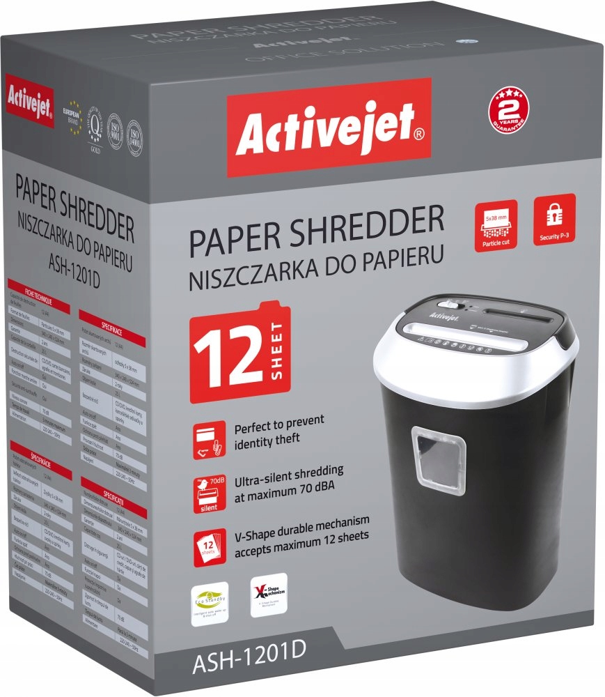 ПОТУЖНИЙ ШРЕДЕР ACTIVEJET ASH-1201D ДЛЯ ДОКУМЕНТІВ, КАРТОК, ВЕЛИКОГО КОШИКА