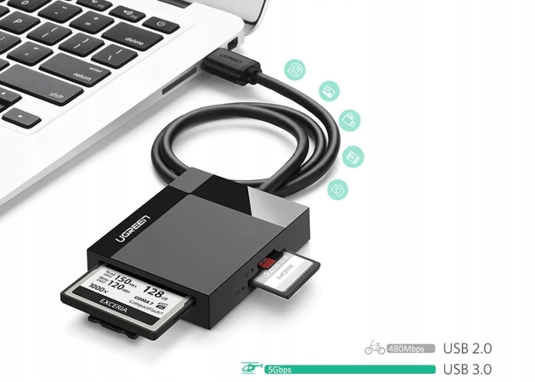 Читач 4 -1 -1 -1 карт UGREEN був розроблений з найбільшою швидкістю передачі даних, безліччю портів та компактної конструкції. Підтримка порту USB 3.0 дозволяє передавати дані до 5 ГБ в секунду. Пристрій сумісний з операційними системами Windows (XP ... 10), Mac OS та Linux. Завдяки технології Plug & Play, додаткового програмного забезпечення не потрібно. Читач підтримує картки пам’яті TF, CF, SD, MS до 256 ГБ