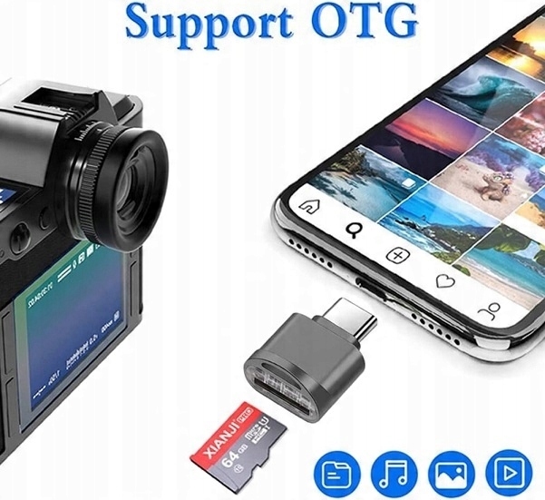 Адаптер пристрою для зчитування карт пам’яті USB C OTG сумісний із MacBook, Samsung Galaxy, Google Pixel та іншими пристроями. Працює з більшістю телефонів, планшетів і ноутбуків. Підтримує передачу даних USB OTG, простий і швидкий перегляд і резервне копіювання фотографій, відео та інших файлів.