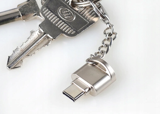 Малий розмір зчитувач в алюмінієвому корпусі, - зручний пристрій, що підтримує найпопулярніший тип карт пам'яті. Завдяки компактним розмірамви завжди можете мати його з собою, з ключами, у сумці, рюкзаку чи кишені, а завдяки кільцю для ключів ви можете повісити зчитувач на ваших ключах.
