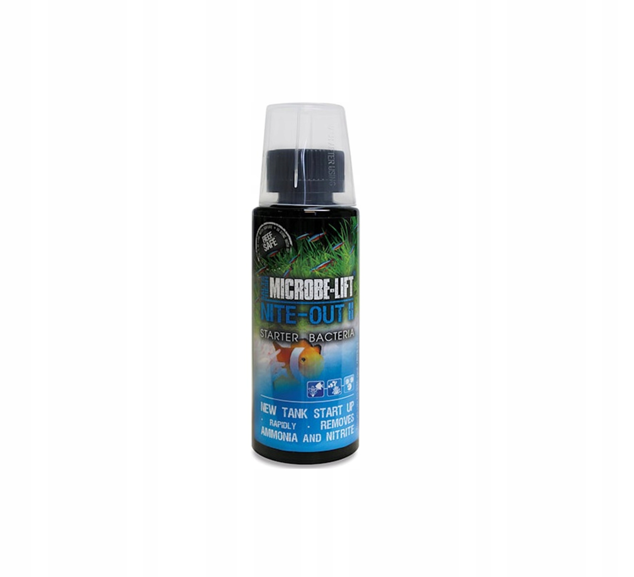 MICROBE-LIFT Nite Out II призначений для використання в морських акваріумах. Він містить відібрані штами нітрифікуючих бактерій, які природним чином розкладають аміак. Мікроорганізми, що містяться в розчині, сприяють запуску та підтримці процесів нітрифікації на належному рівні, видаляючи з резервуару дуже шкідливий аміак. MICROBE-LIFT Nite Out II містить штами бактерій Nitrosomonas, Nitrospira та Nitrobacter. Перші окислюють аміак до нітритів, інші перетворюють нітрити в нітрати.
