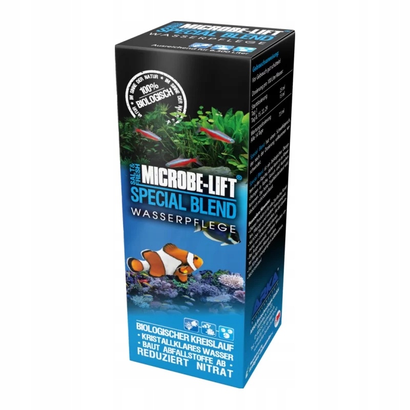 Повна екосистема в пляшці, призначена як для прісноводних, так і для морських акваріумів. Це зменшує частоту заміни води, а отже, дозволяє рідше чистити резервуар. Безхімічний продукт на основі живих бактерій. Прискорює дозрівання нового резервуара. Знижує рівень органічних забруднювачів і стимулює ріст рослин. Знижує рівень аміаку та прискорює розкладання нітратів. Усуває неприємний запах і помутніння води. Покращує стан рослин і їх здатність до фотосинтезу. Прискорює розкладання забруднюючих речовин, що осідають у землі, на рослинах і каменях. Прискорює виведення білків.
