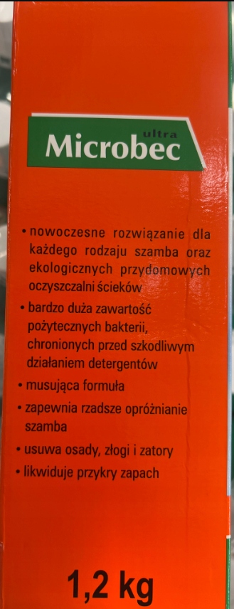 Підготовка мікробіологічних ферментів останнього покоління, призначеної для біодеградації вмісту септики. Захід з дуже свіжим та інтенсивним запахом евкаліпта, який надзвичайно ефективно видаляє неприємний аромат, характерний для септичного танка. Microbec використовує інноваційне, запатентоване рішення, що передбачає закриття активних бактерій у мікросферах, оточених спеціальним захисним покриттям. Завдяки цьому, мікроорганізми, які вони містять, не вмирають у контакті з сильними хімічними речовинами, а продукт підтримує ефективність, використовуючи традиційні миючі засоби.
