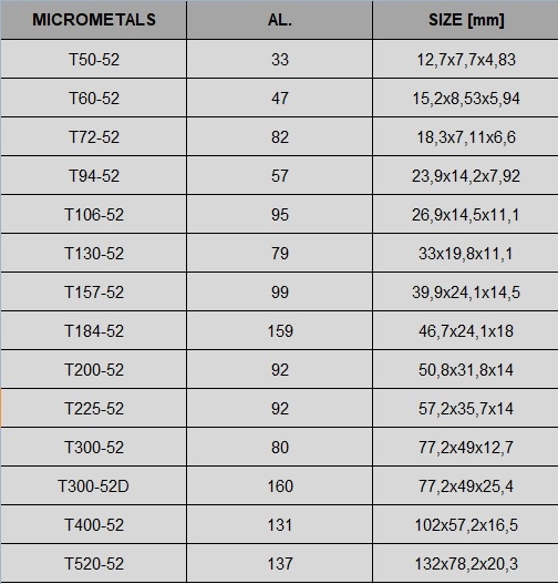 MicroMeals Ferritt Core T184-52 Al = 159