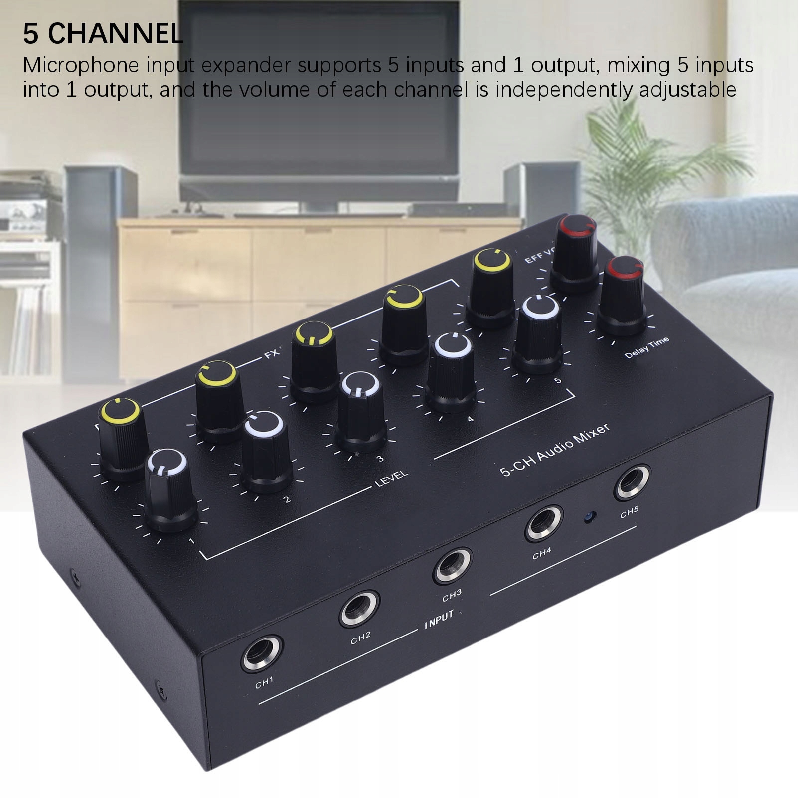 2. 5 каналів: мікрофонний вхідний розширювач підтримує 5 входів і 1 вихід, змішуючи 5 входів з 1 виходом, а гучність кожного каналу регулюється окремо