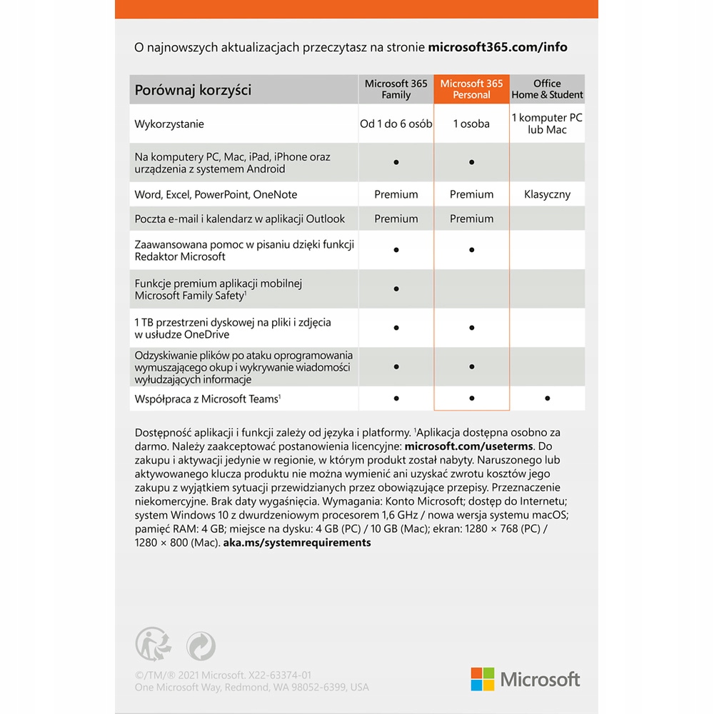 - Назва пакета: Microsoft 365 Personal BOX PL P10