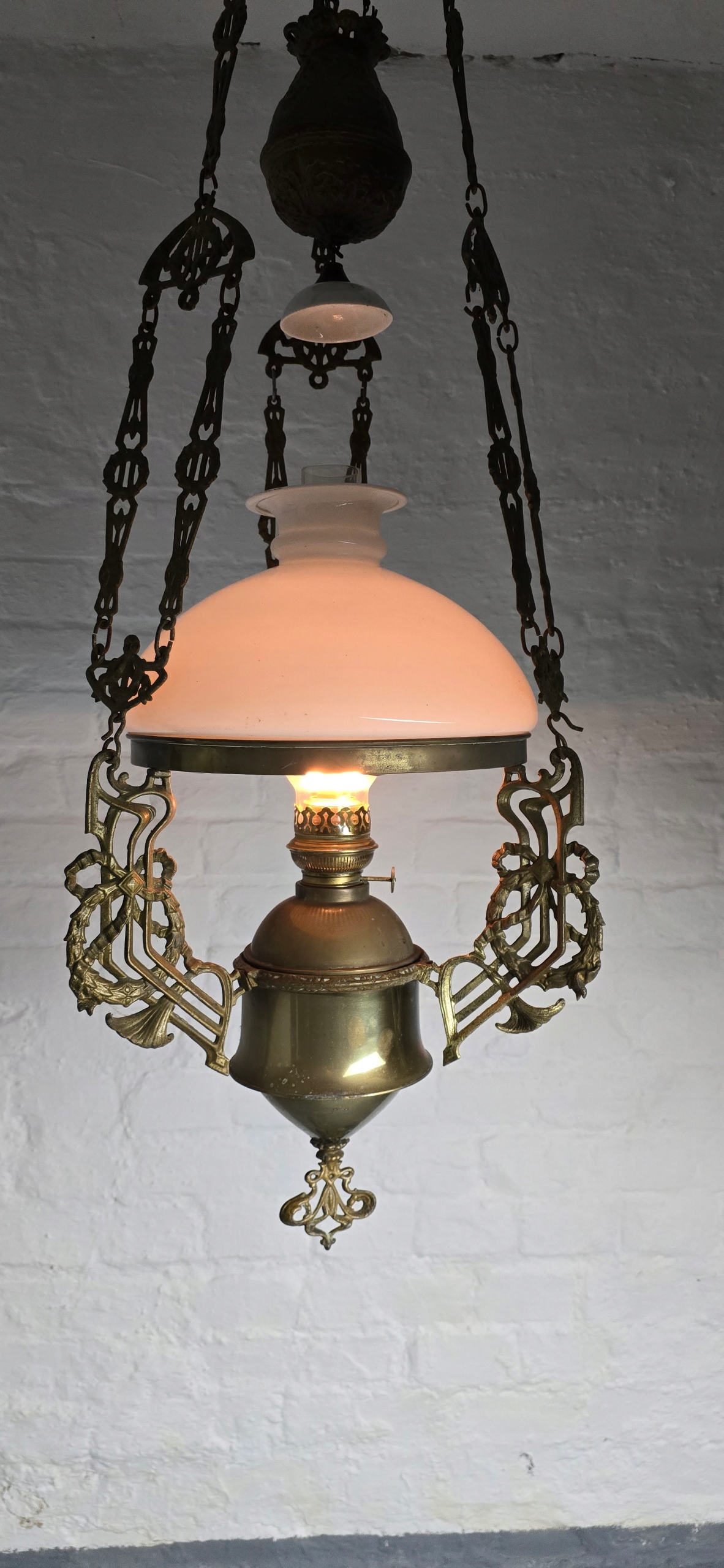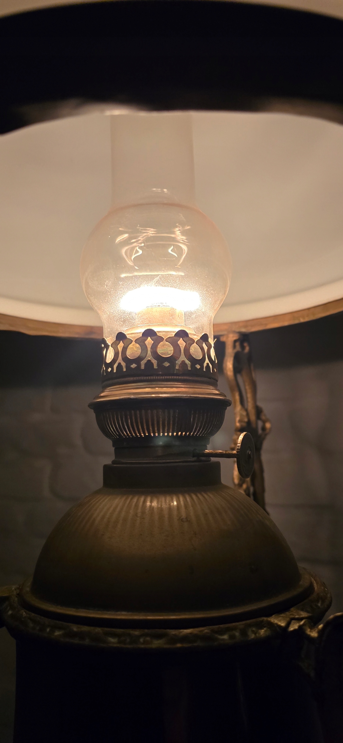 Мідна лампа в стилі модерн кінця ХІХ ст., що працює на гасі та електриці