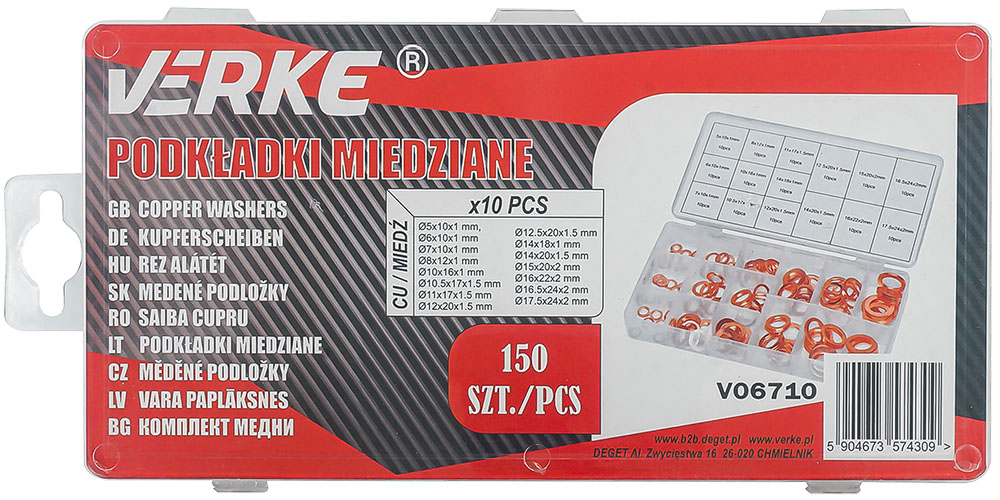 - Високоякісна мідь : мідні прокладки забезпечують довговічність та резистентність до корозії. B> Набір 150 штук : Завдяки великій кількості прокладок, набір надзвичайно вигідний і буде працювати в багатьох різних програмах. У популярних розмірах вони відповідають більшості стандартних робіт. Li>