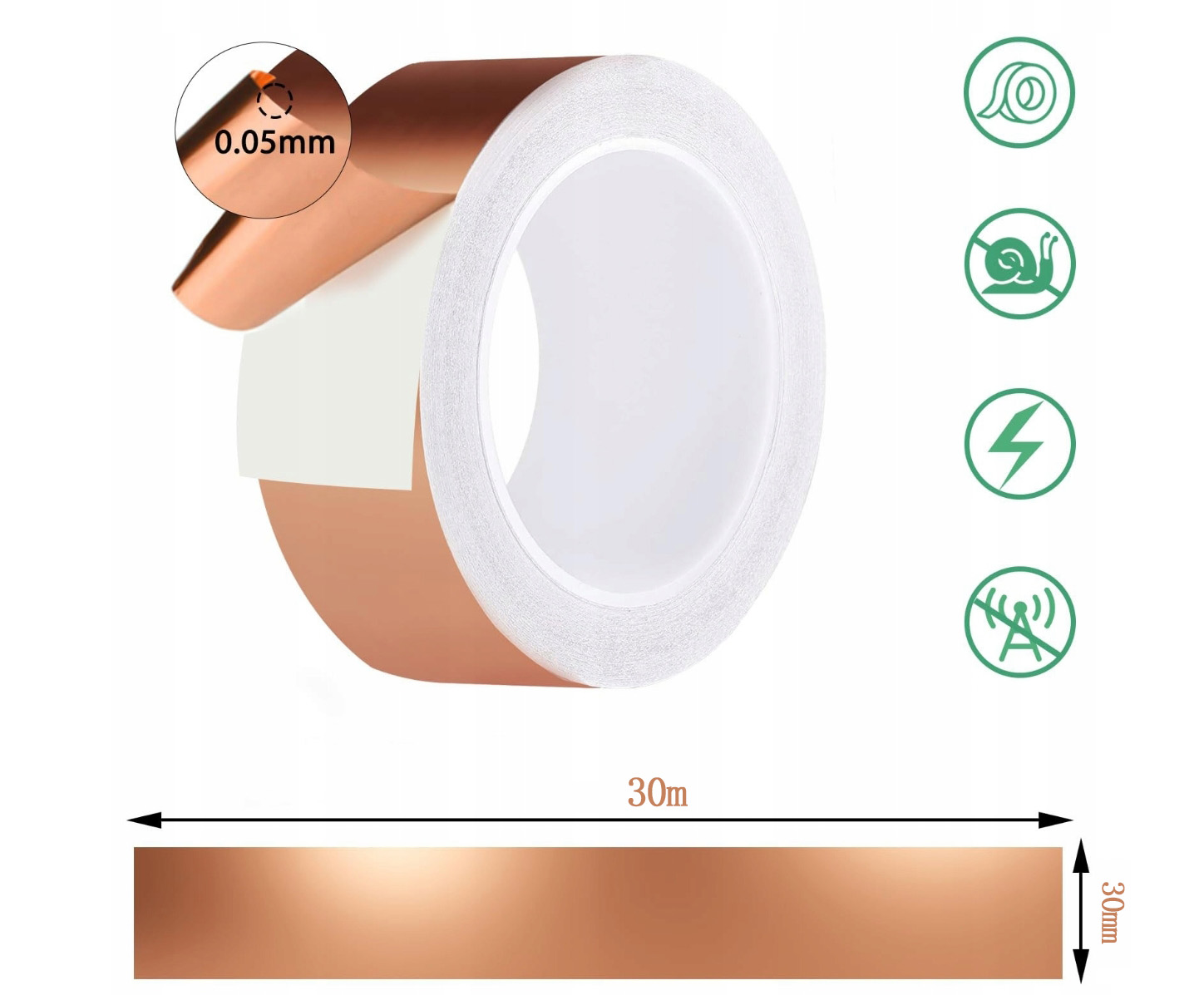 Мідна стрічка для равликів захисна самостійна служба 30 мм 30 метрів