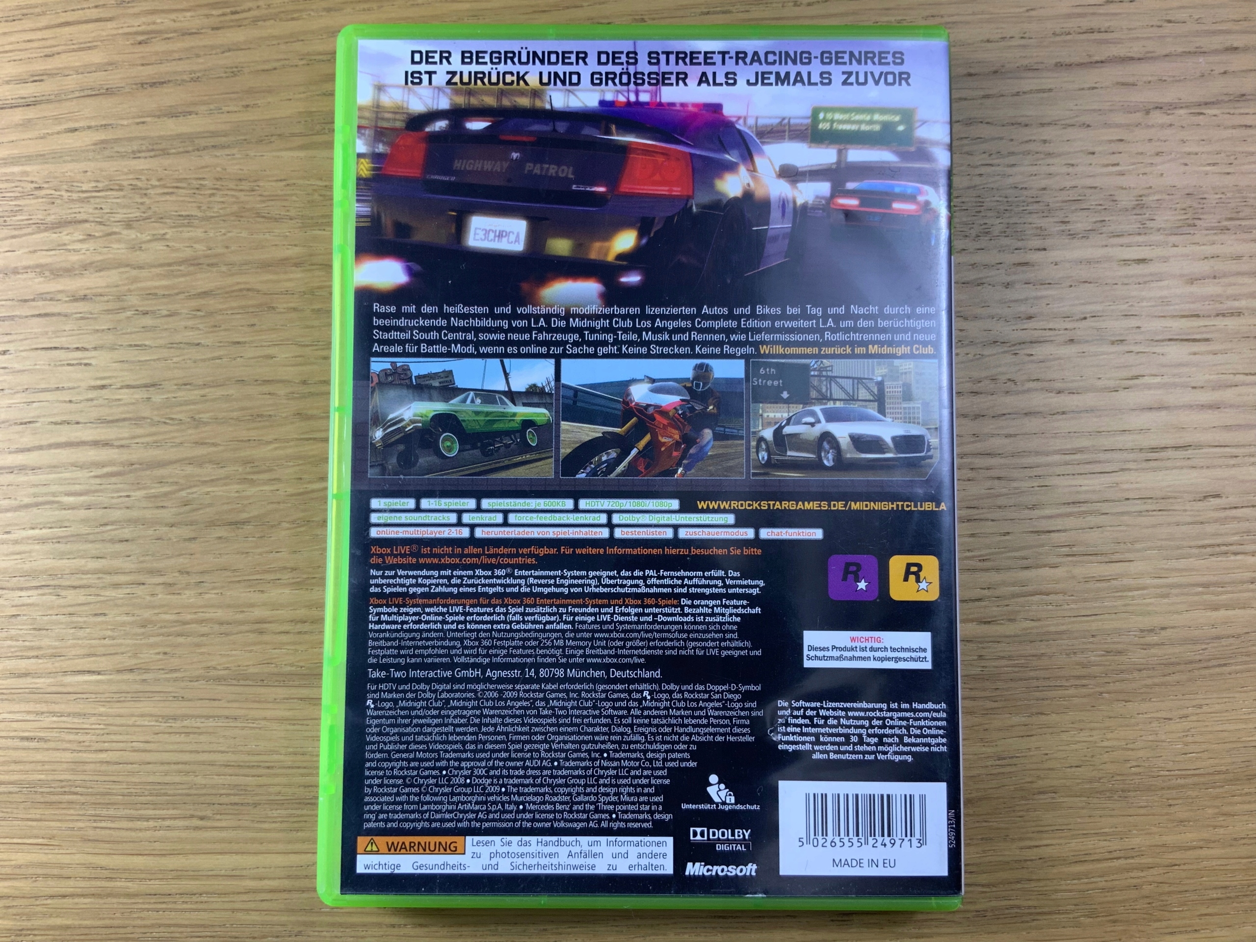 MIDNIGHT CLUB LOS ANGELES COMPLETE дуже хороший диск + повний комплект для XBOX 360