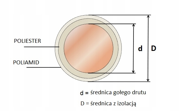 - A wire covered with an electro -insulating coating made of polyester and polyamide layers (photo next to it), resistant to 200 STC induction elements,