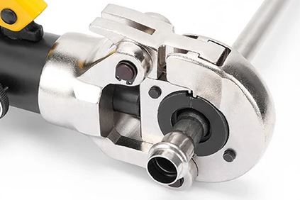 ПРОФЕСІЙНИЙ обтискний інструмент для обтиску труб і з'єднувачів, що використовуються для з'єднань типу - М, сталь, мідь, согл. рекомендації виробника роз'єму. Кримпер характеризується високою якістю виготовлення та повторюваністю гофрованих з'єднань. Преси оснащені головкою, що обертається та відкривається, що дозволяє легко та швидко робити гофри. Використання гідравлічного приводу забезпечує точне та щільне затискання з’єднувача.