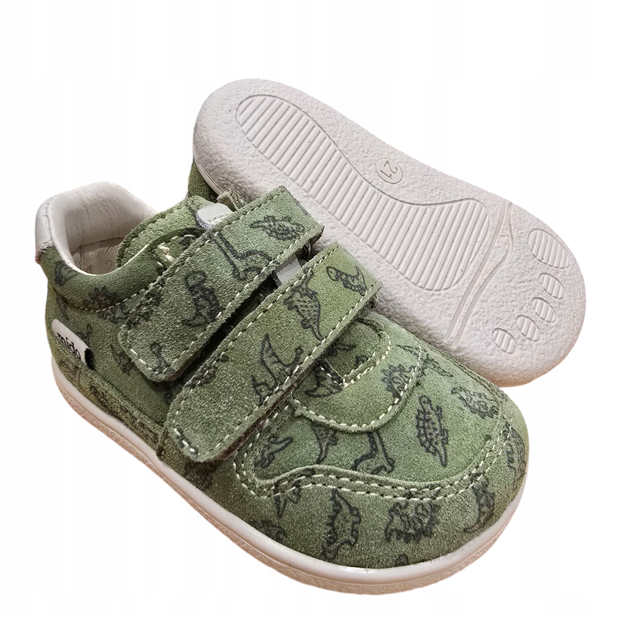 Мідо босоніж дитяче шкіряне взуття М'які adidas зелені динозаври 21