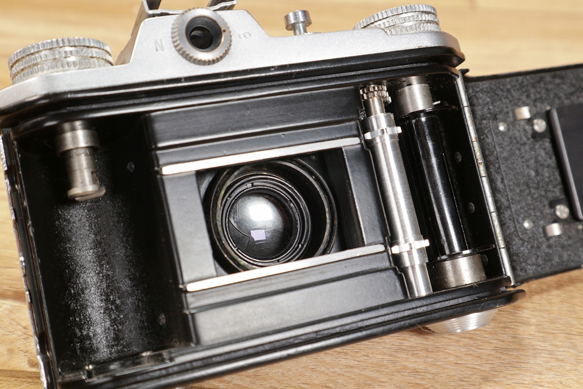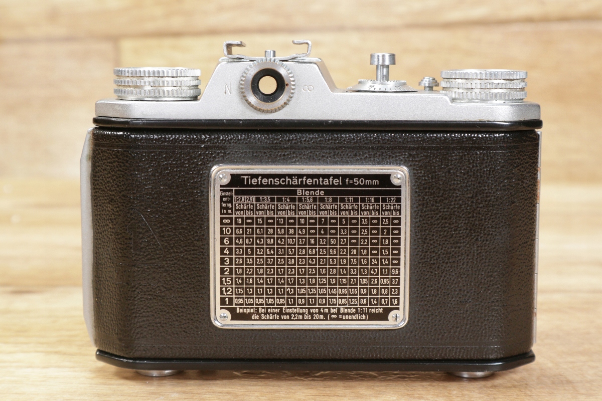 Фотоапарат у хорошому стані з незначними слідами використання, лише пошкодження шпону (трохи помітного на фотографіях) нижньої кришки об’єктива вказує на те, що фотоапарат було виготовлено в 1956.