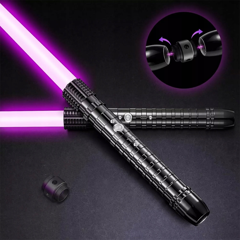 Світлові шаблі RGB Light FX можна комбінувати як два в одному, а лезо та руків’я також можна розібрати. RGB Light Sword має відполіровану металеву ручку та обважнене ПК-лезо для довговічності.