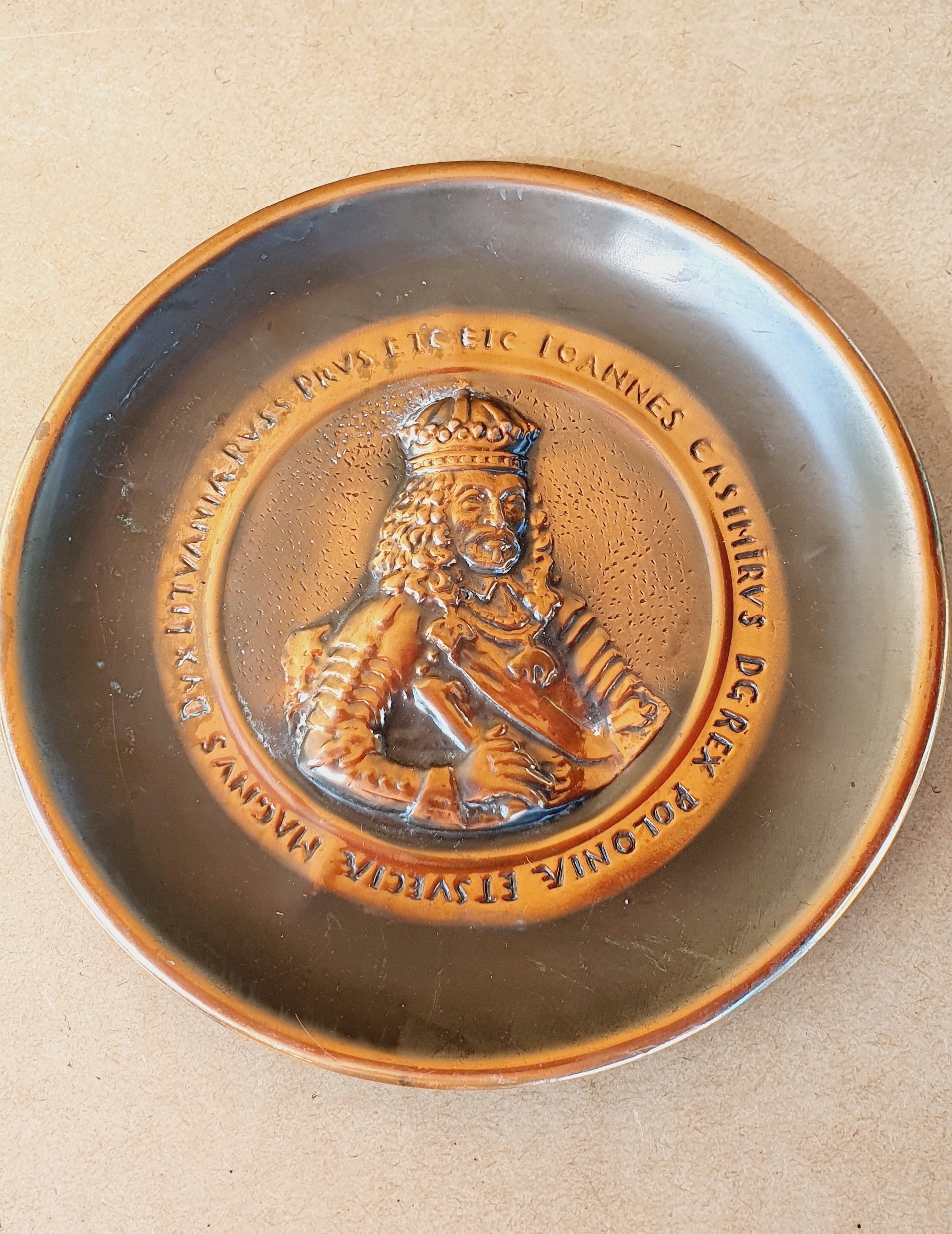MIEDZIANY TALERZ OZDOBNY KRÓLEWSKI