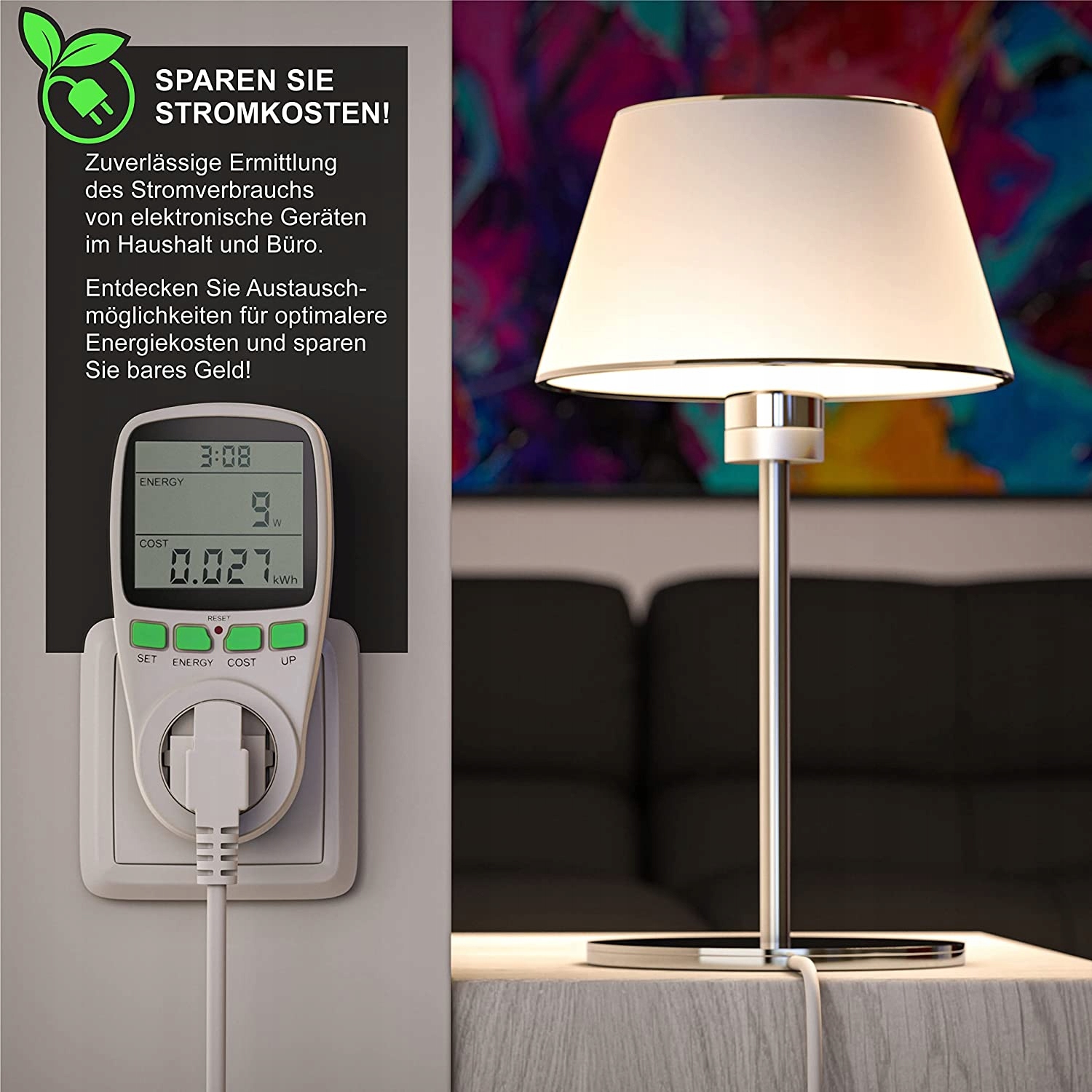 Застосування: Вимірювання та розрахунок споживання енергії та вартості підключених пристроїв / допомагає ефективно економити енергію та гроші / надійно вимірює споживання енергії електронними пристроями в домі та офісі