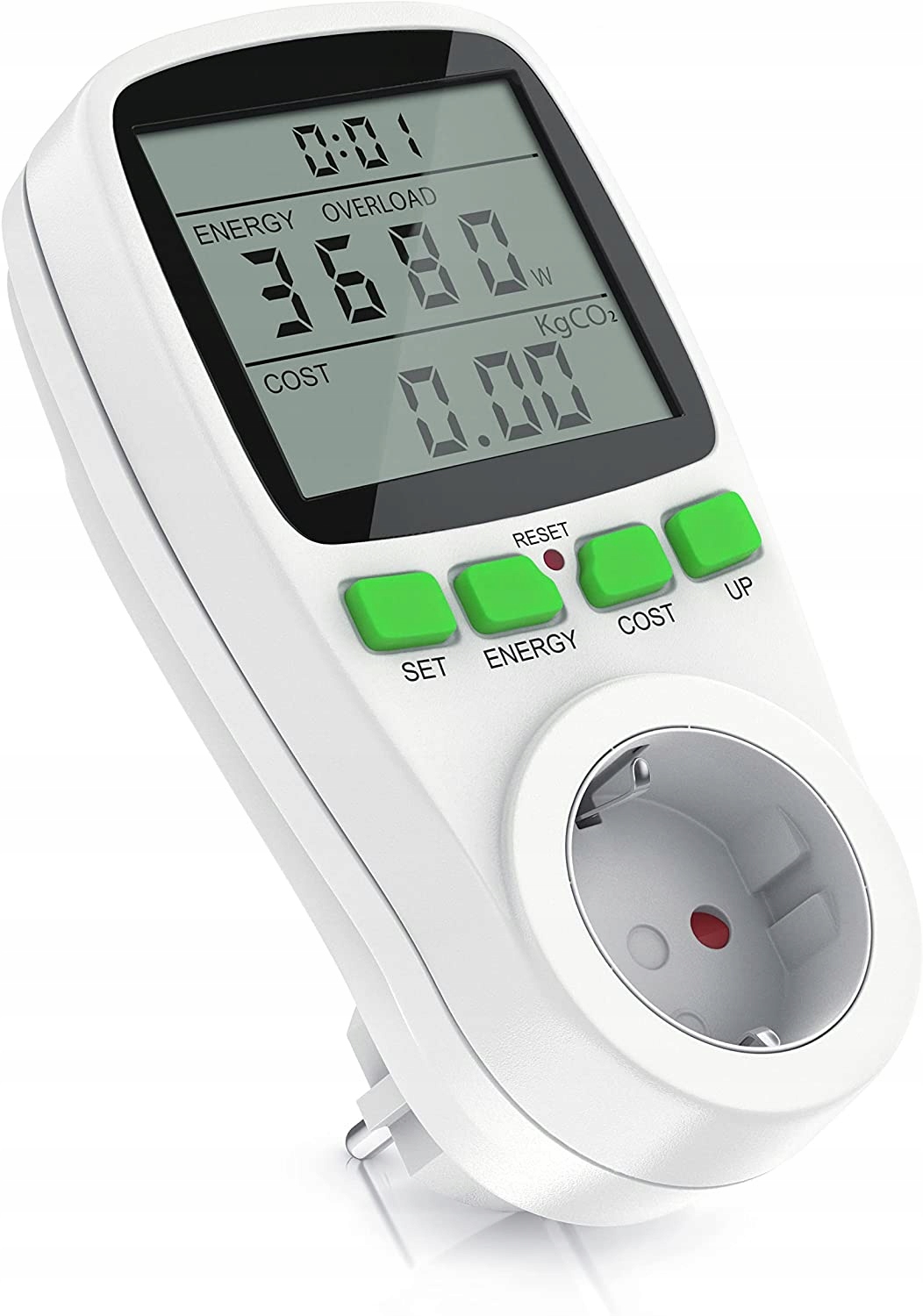 Електрична напруга: 230 В змінного струму 50 Гц | максимальний струм: 16 А | максимальна потужність: 3680 Вт | Живлення: 2 х LR44 батарейки | тимчасова напруга живлення: CATII | відносна вологість повітря: до 30°C: максимум 80% / 30-40°C: максимум 50% | висота вимірювання: до 2000 м | Точність: ± 2 %. дисплей: В (електрична напруга), А (струм), Гц (частота), Power Factor (коефіцієнт продуктивності), Overlord + Вт (ліміт перевантаження у Вт), Вт (потужність) + кВт-год, вартість + кВт-год + день + кг CO² + вартість; Температура: від 5 °C до 40 °C до 40 °C °C