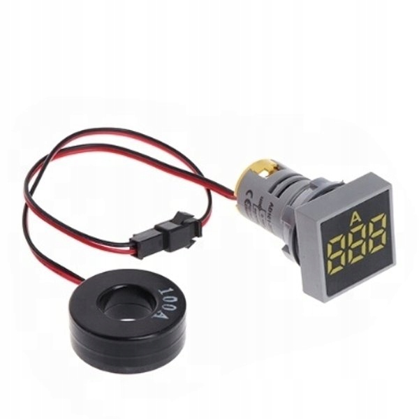 MIERNIK PRĄDU AMPEROMIERZ LED ŻÓŁTY 100A KONTROLKA 22MM